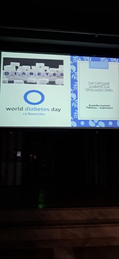 Στην εκδήλωση παρέστη ως ομιλήτρια η γιατρός, Παθολόγος-Διαβητολόγος, κα. Αναστασία Μιχαηλίδου, με θέμα: “ΣΑΚΧΑΡΩΔΗΣ ΔΙΑΒΗΤΗΣ ΚΑΙ ΠΡΑΓΜΑΤΙΚΟΤΗΤΑ”.